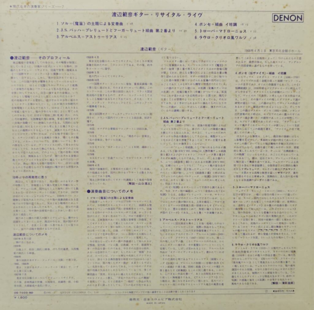 レコード「渡辺範彦リサイタルライブ」OS-7033-ND