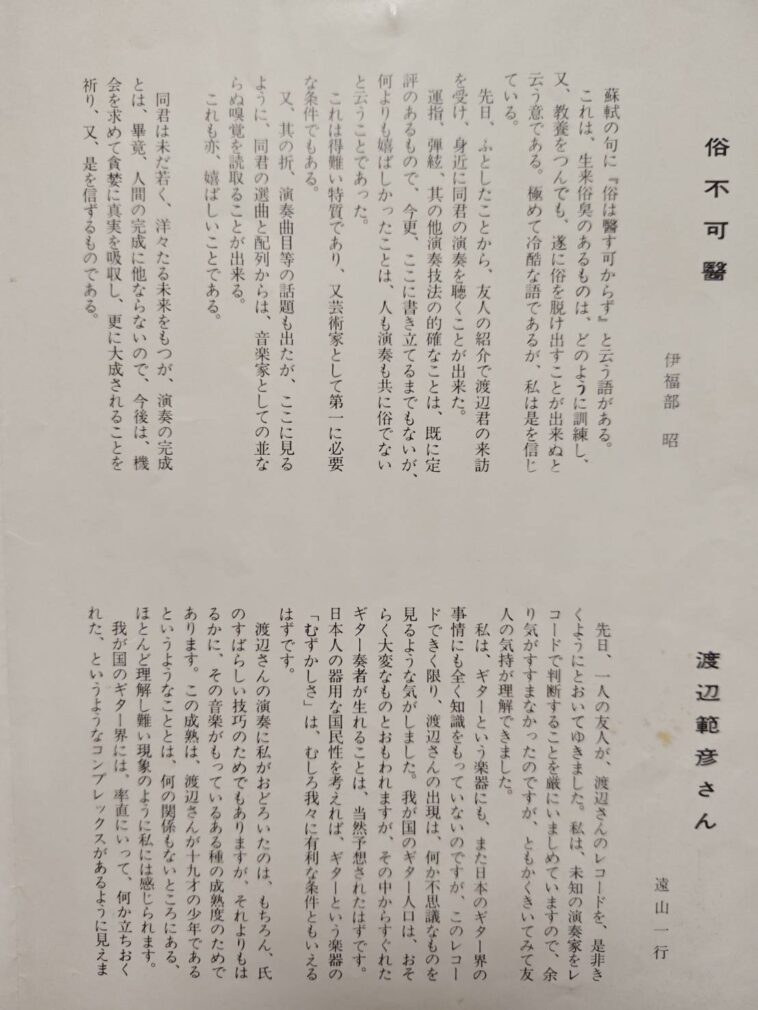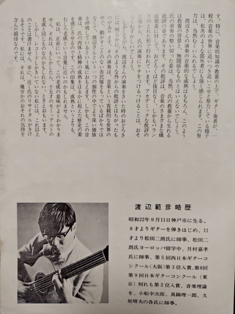 範彦が初めてレコード録音しました1967年の翌年のコンサートになります。